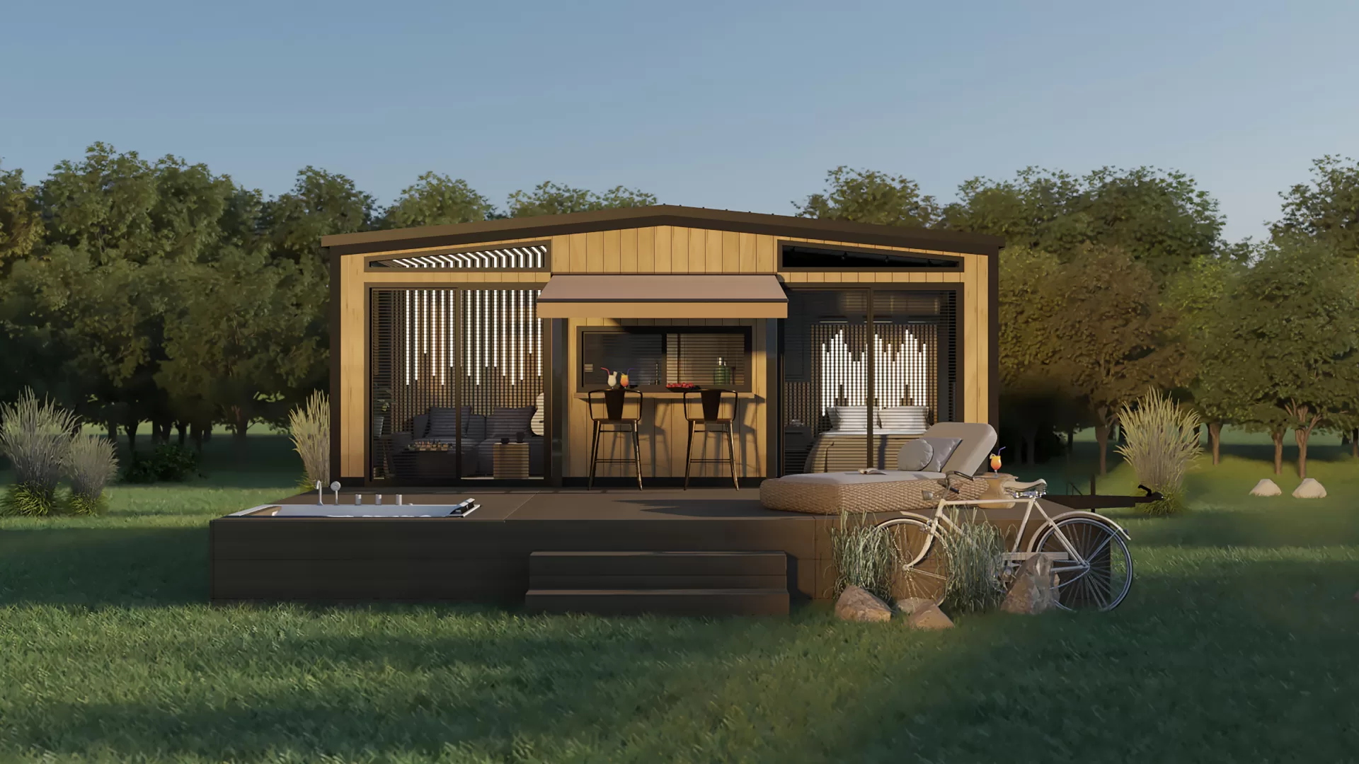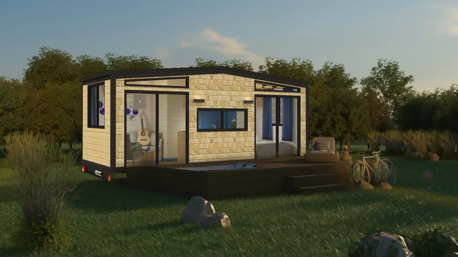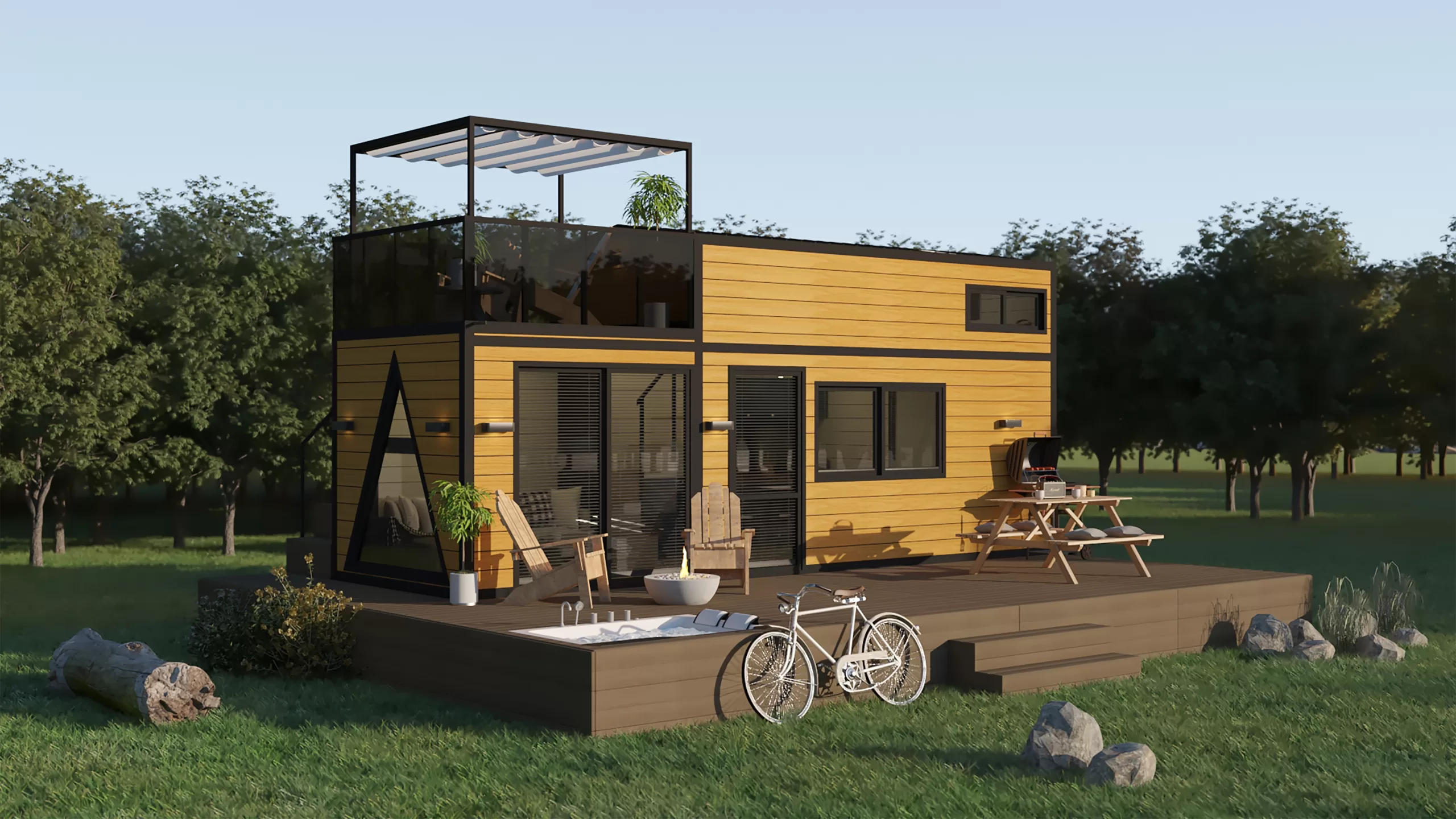 Mit seiner 1+1-Struktur von 7 Metern Länge und 2,55 Metern Breite bietet es ein Leben im Einklang mit der Natur.