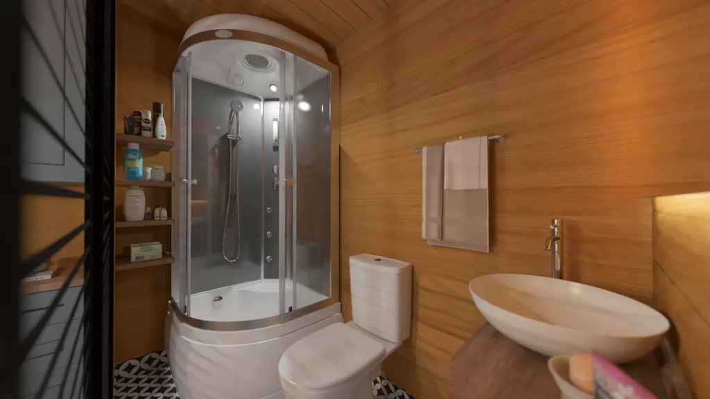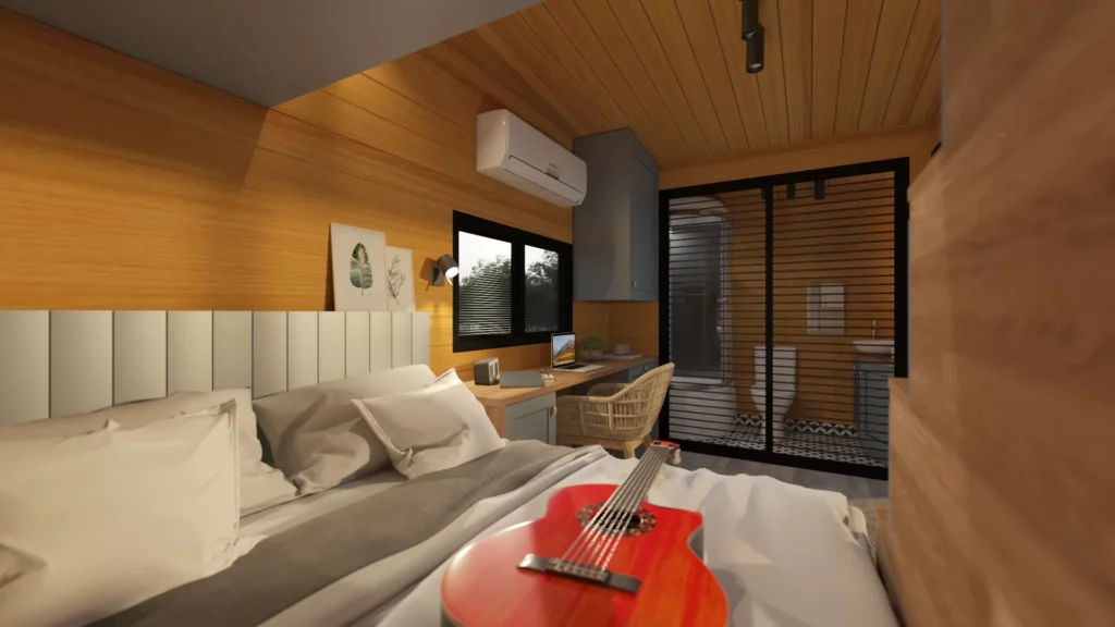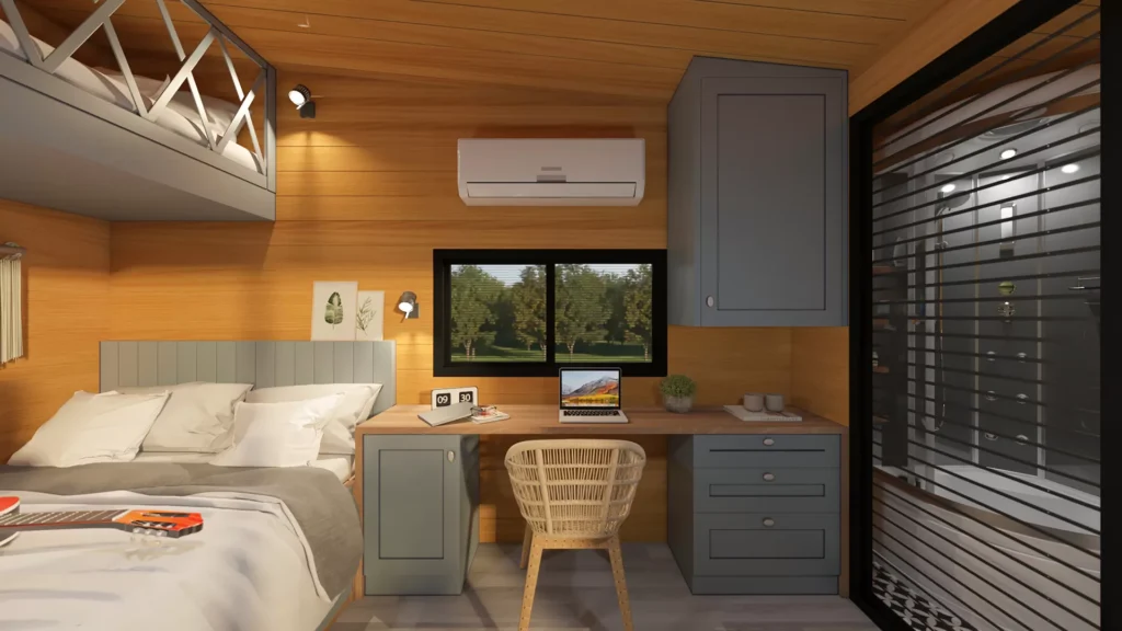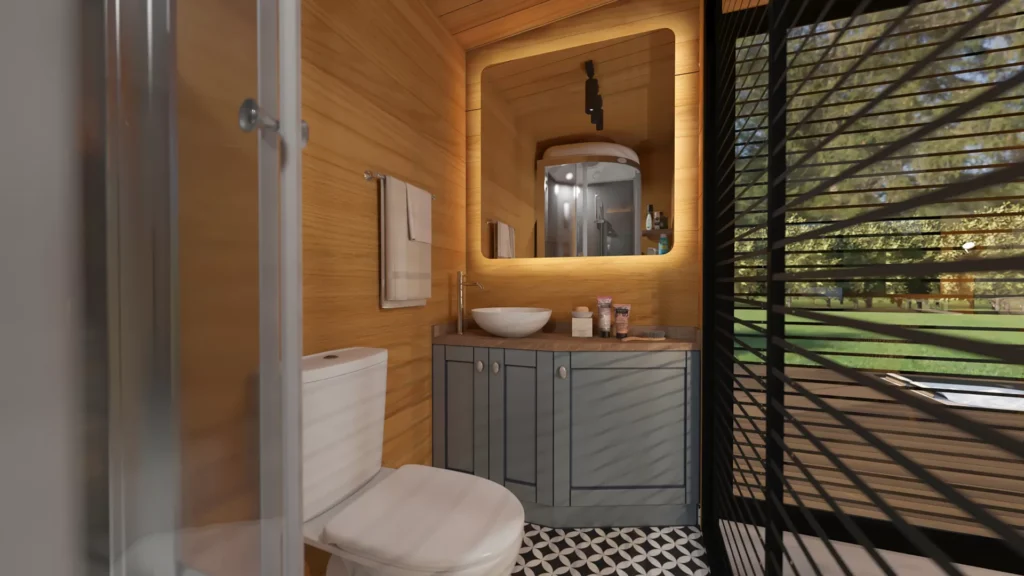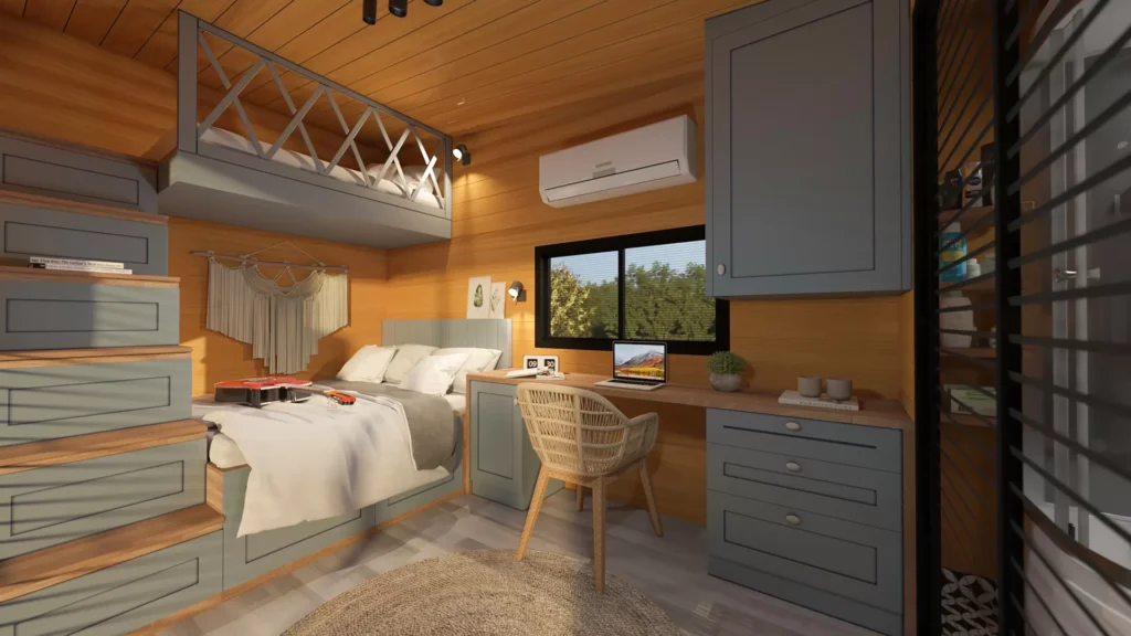 Mit einer Länge von 5 Metern, einer Breite von 2,55 Metern und einem Grundriss mit 1+0 Zwischengeschossen bietet es kompakte Lösungen, die Ihnen den Einstieg in ein minimalistisches Leben erleichtern.