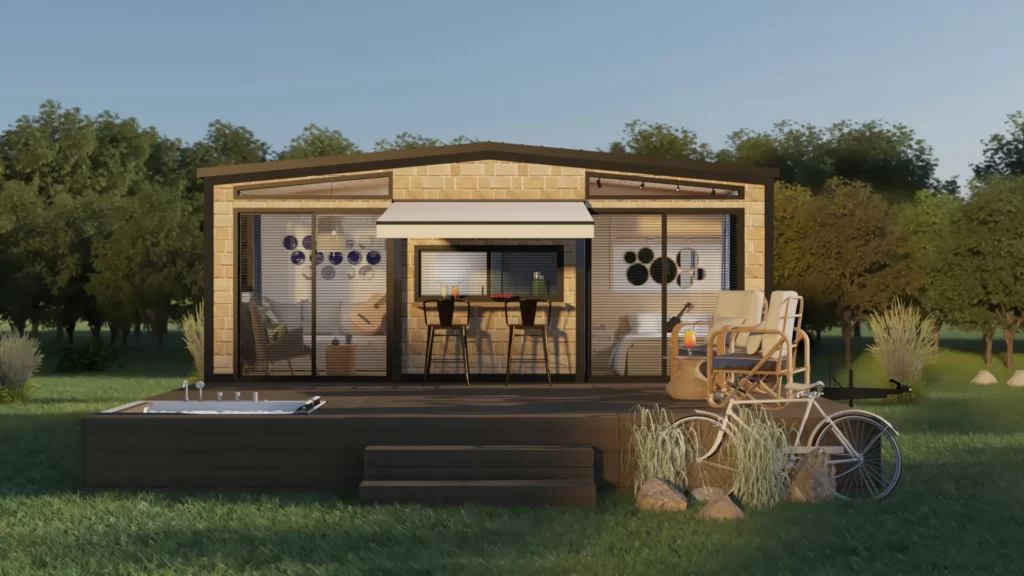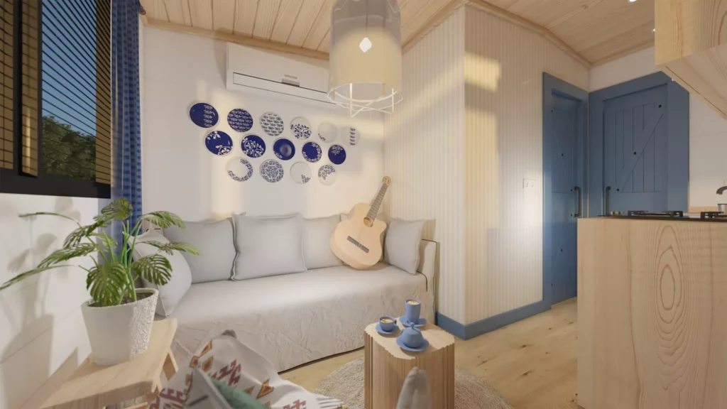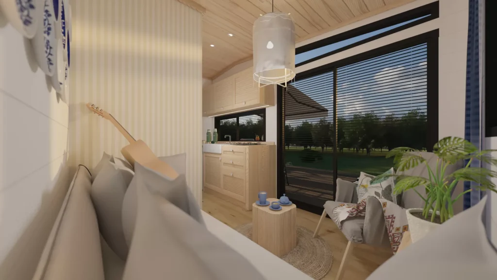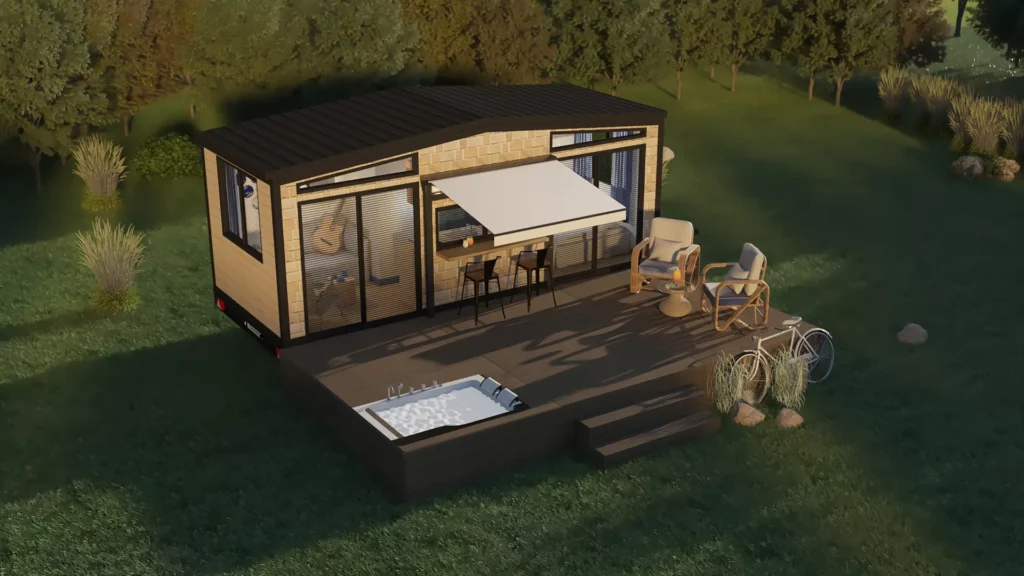 Mit seiner 1+1-Struktur von 7 Metern Länge und 2,55 Metern Breite bietet es ein Leben im Einklang mit der Natur.